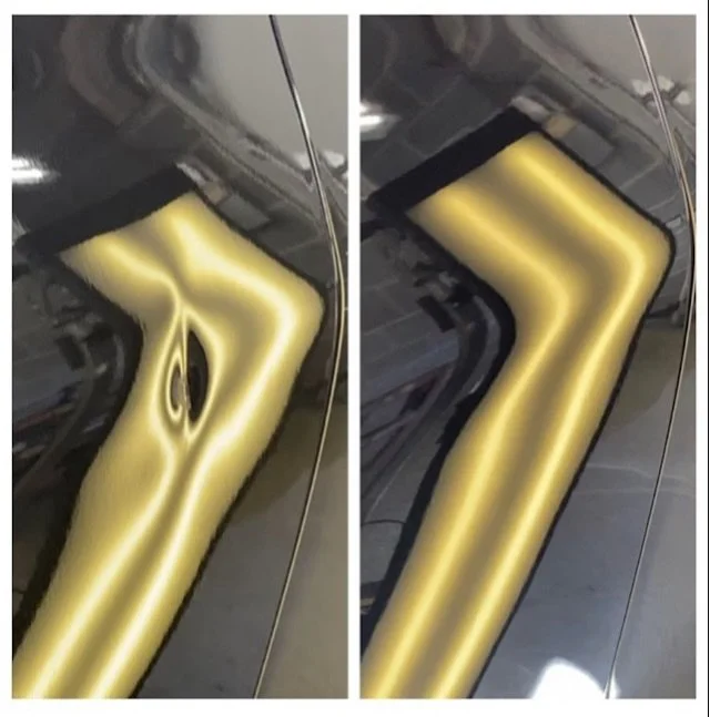 The depth of a dent is relative to the amount that the sheet metal has been “stretched”. PDR is limited in it’s ability to shrink extremely stretched metal.